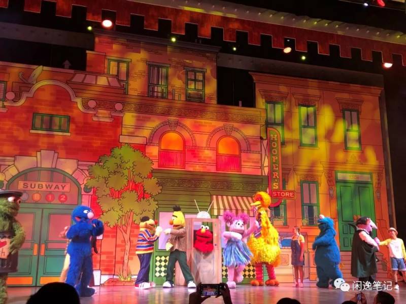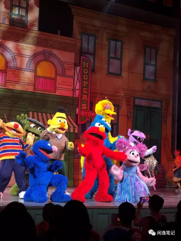大概是中午时间,游客人比较多,各处排队时间都挺长。闲逛中,我们看着某处门口的队伍开始往里走,就跟着走了进去,趁机吹吹空调休息一会儿。等开演了才知道是芝麻街的秀。