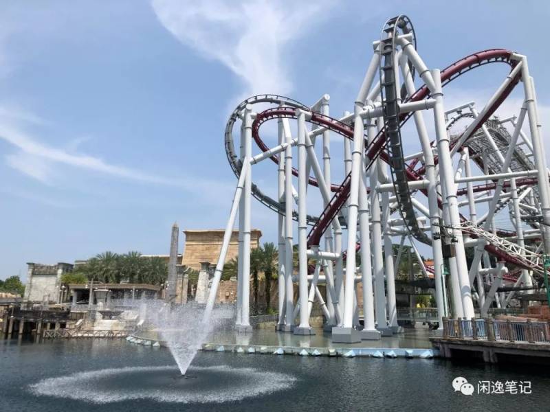 接着我们去了侏罗纪公园,据说里面的漂流很好玩,可惜,排队要2个小时,罢了!对面有个项目要排40分钟,就直接去了。这个项目类似过山车,我们坐在悬吊的椅子上,然后机器沿着轨道飞驰而出,在各种弯道的作用下,偶尔会有要被甩出去的感觉。弟弟说:这个好刺激呀,真好玩!幸好只有5分钟,时间再长一些,我的心脏会受不了。