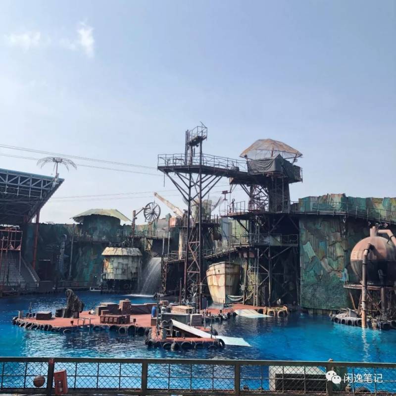 开场前会有两个水手调动观众的气氛,坐在正中间的前几排湿身概率几乎是百分百。演出效果超出预期,有一种身处片场的感觉,当高处的水手被“击中”后,直接掉入水中,时不时地主角驾驶者摩托艇飞驰而过,眼看着要撞上却一个180度的急转弯,激起一大片水花,有惊无险。只是爆炸声有点大,小孩子可能会被吓到。