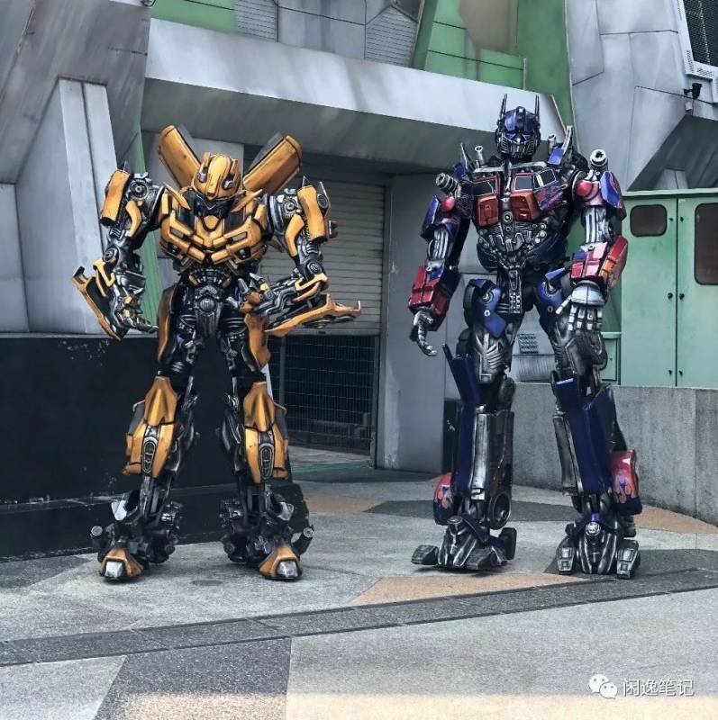 第二个出场的是大黄蜂!我们跟着排队的人缓缓前行,就在快要排到的时候,大黄蜂突然转身往回走。原本欢呼雀跃的人群一下子懵了。看着大黄蜂往回走,慢慢地走,看着他从出口处迎来了擎天柱。我的心情犹如过山车啊,看到擎天柱那熟悉的蓝与红,小帅开心死了。我们俩拚命向他招手,就像小粉丝看见自己的偶像一模一样。