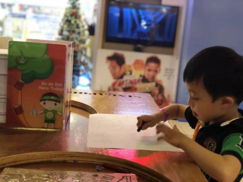 在小花园边上,还有一个专供小朋友们涂色的木板拓印站。木板拓印这种绘画形式其实早在上世纪五、六十年代,就风靡新加坡的大街小巷了。小宝贝们可以在这里完成一幅具有新加坡特色的木板拓印画,十分有趣。