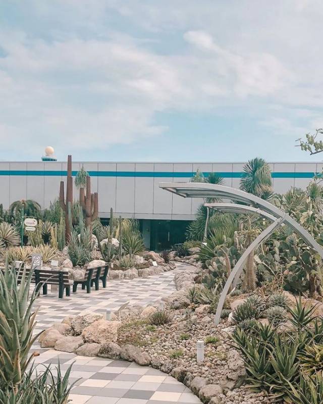 在T1三楼,有全球唯一一个位于机场内部的仙人掌花园,这里有100多种来自美洲和非洲的仙人掌和多肉植物,来到这,就像来到了热烈的沙漠派对,可以在这里尽情地喝酒晒太阳。