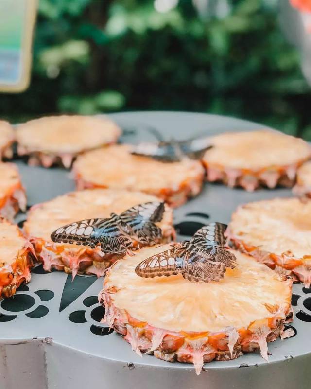 这里的蝴蝶一点都不怕人,它们时而在你眼前飞舞,时而鲜美的菠萝上吮吸汁液,又是还会在你身上停留休息片刻呢。