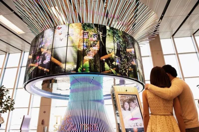 位于1号航站的巨型社交树也非常出名,拍一张照片,就能张贴在“社交树”上观看,并选择不同的新加坡主题背景。