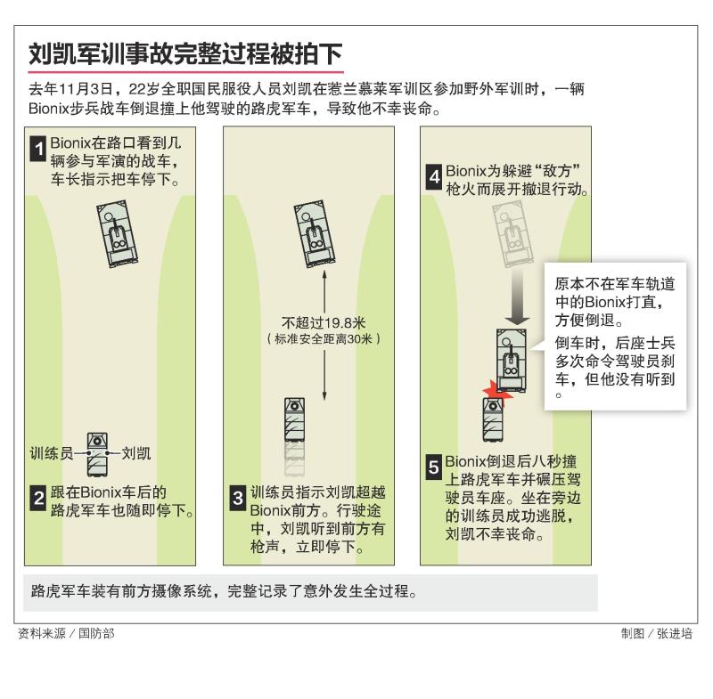 11月3日,军训进行到上午9点58分时,Bionix步兵战车开向一个路口,还未抵达路口时,战车车长发现有几辆训练车经过,于是下令战车停下。看到前方战车突然停车,刘凯驾驶的路虎车也立即停下来。