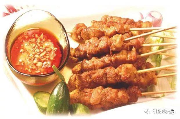 香味四溢的鸡肉沙爹是新加坡著名的马来美食,一只只鸡肉串经火炭一番烧烤后,再配上饭团、切片鲜黄瓜和洋葱,就是一道可口美味的马来小吃。沾上精心调制的黄梨花生酱,称得上绝顶美味,是本地人和游客的最爱美食之一。