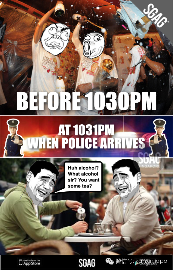 话说新加坡不是说要开始禁酒令嘛,以后啊,10点半过后,新加坡公共场所(比如大马路上啊,组屋楼下啊,什么的)都不许喝酒啦!